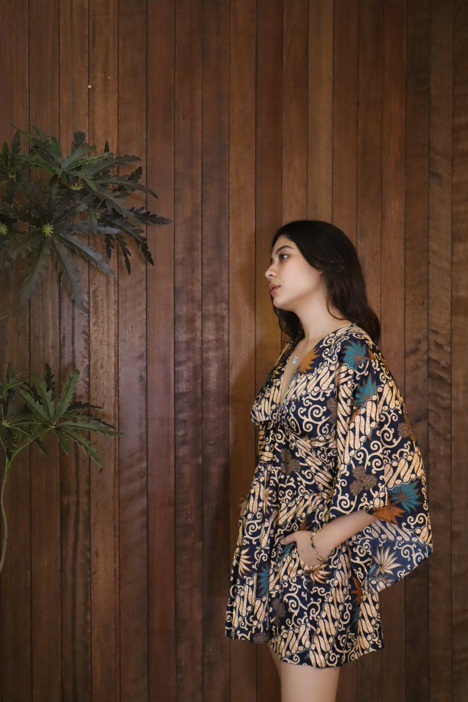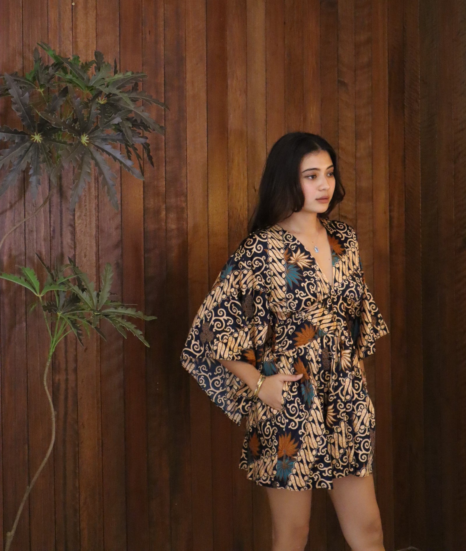 This versatile free-size piece features a stretchable back to comfortably fit up to size L. Made from soft, breezy silk polyester, it includes practical side pockets for everyday ease. Proudly Made in Malaysia.