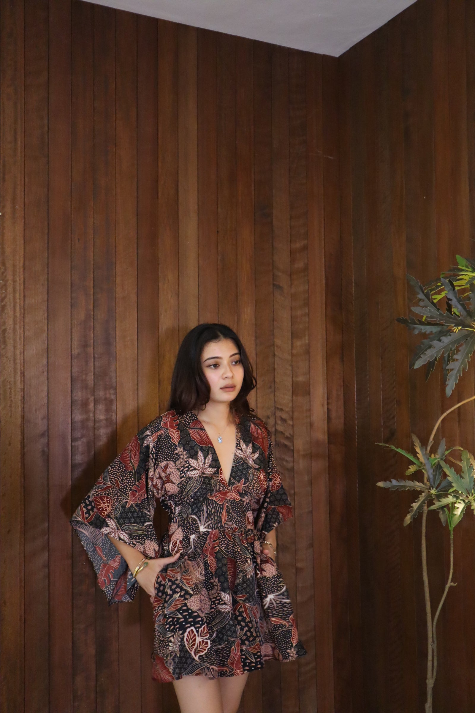 This versatile free-size piece features a stretchable back to comfortably fit up to size L. Made from soft, breezy silk polyester, it includes practical side pockets for everyday ease. Proudly Made in Malaysia.